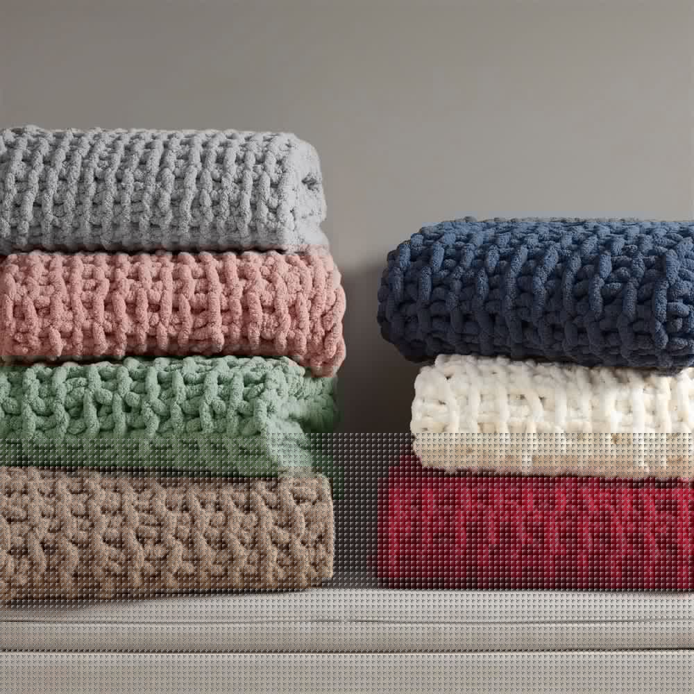 Chenille Chunky Knit Brown Polyester Throw Blanket