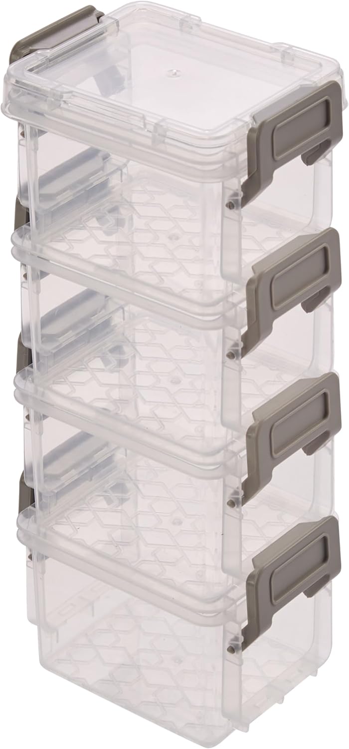 Simplify Storage Boxes| 4 Pack | 5oz | Stackable | Lockable Lid | Great for Office Accessories | Home Storage | Clear and Grey