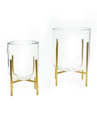 Storied Home Decorative Glass Candle Holder Gold-Tone
